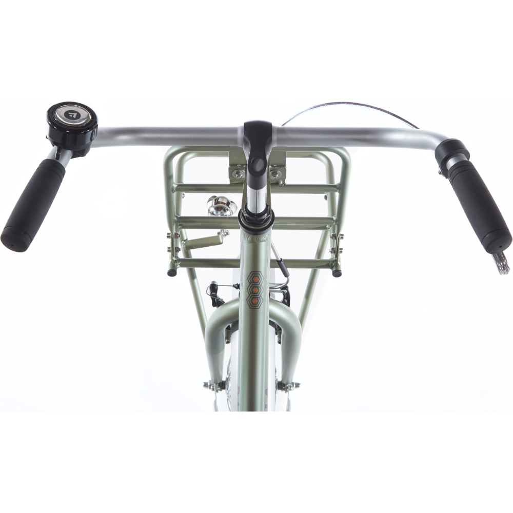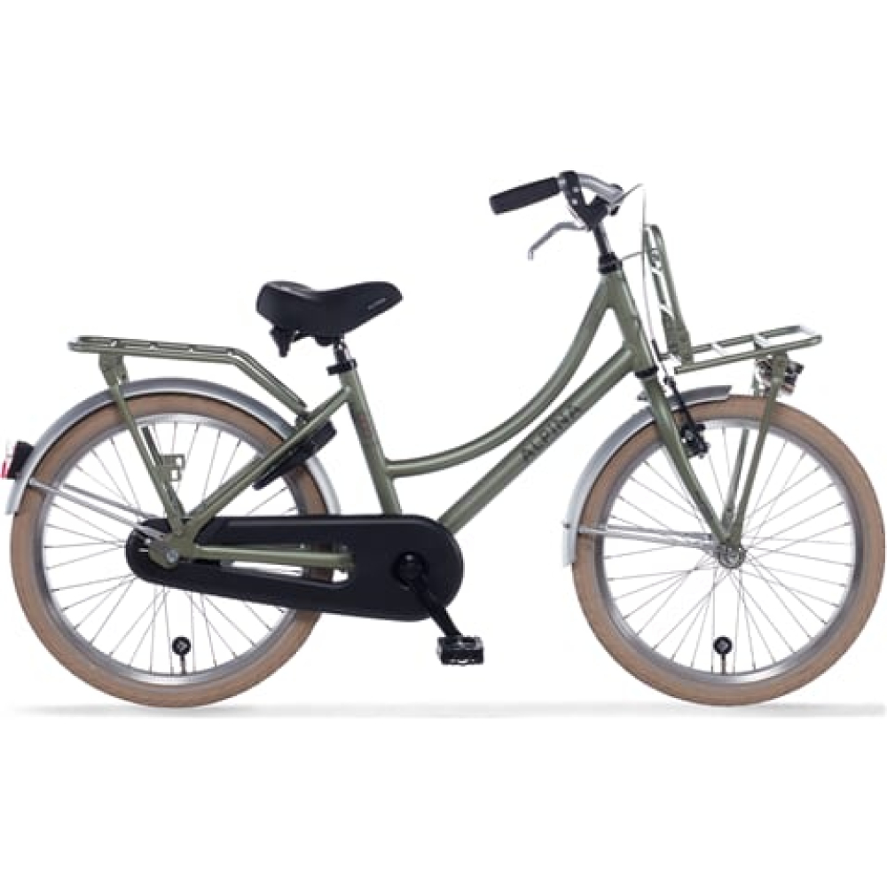Deze prachtige Alpina Cargo 22 inch Velvet Green Matt transportfiets is voorzien van een terugtraprem en handrem aan de voorzijde.