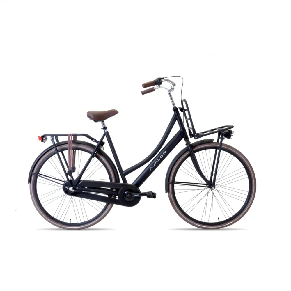 De Avalon UP-Town transportfiets is een stijlvolle damesfiets van nederlandse bouw/kwaliteit. De fiets is voorzien van terugtraprem, 3 versnellingen en batterij verlichting en heeft een stevige stalen frame. Neem eenvoudig spullen mee op de voordrager die je nog kunt voorzien van een fietskrat of fietsmand.