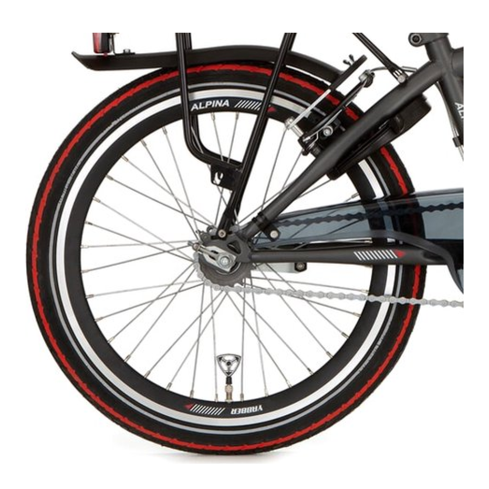 Het zwarte profiel met rode strepen geeft de fiets een sportieve look, terwijl de reflecterende elementen zorgen dat je kind beter zichtbaar is in de schemering of bij slecht weer. De band past op 20-inch kinderfietsen zoals de Alpina Yabber, maar is ook geschikt voor andere fietsen met dezelfde maat.