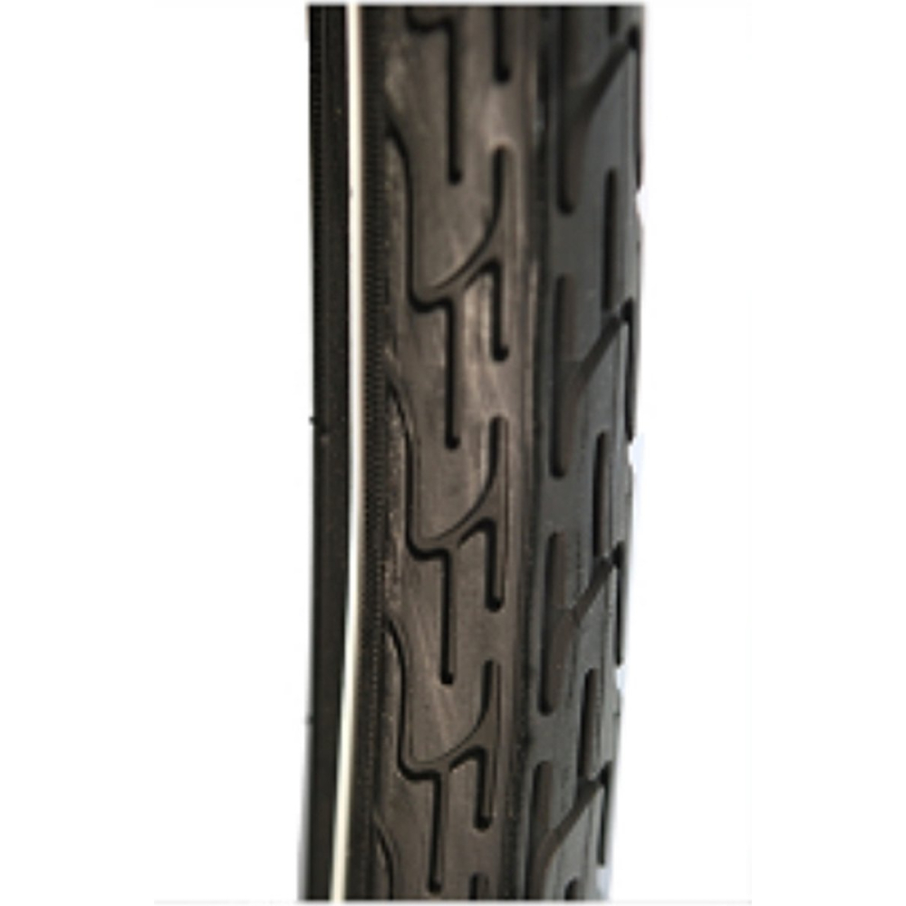 Goedkope buitenband, zwart met witte lijn, zonder reflectie. Let op, deze band is alleen geschikt voor fietsen met 28 x 1 1/2 maat zoals omafietsen. Heeft u een gewone stadsfiets dan heeft u in veel gevallen 28 x 1 5/8 x 1 3/8 nodig. Op de zijkant van de band kunt u uw maat zien.