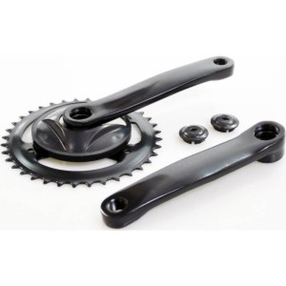 Dit crankstel met 36 tanden en een cranklengte van 127 mm is een universeel model dat standaard gemonteerd is op de 20 en 22 inch Alpina Trial fietsen. Soms verbuigt het crankstel als de fiets een aantal keer gevallen is. Dan is het handig om je crankstel te vervangen.
