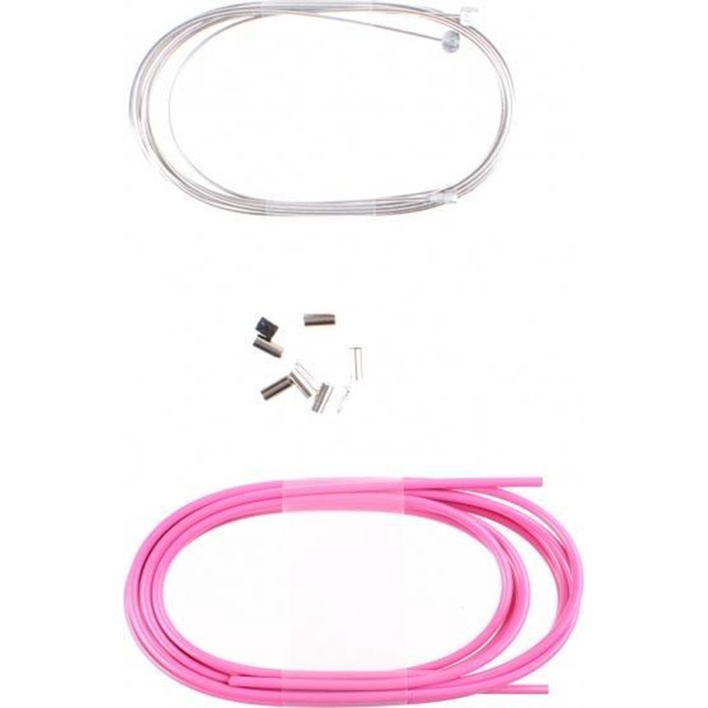 Elvedes universele remkabelset in roze, geschikt voor ATB, MTB en racefietsen. Bevat roestvrijstalen binnenkabels en een buitenkabel van 200 cm.