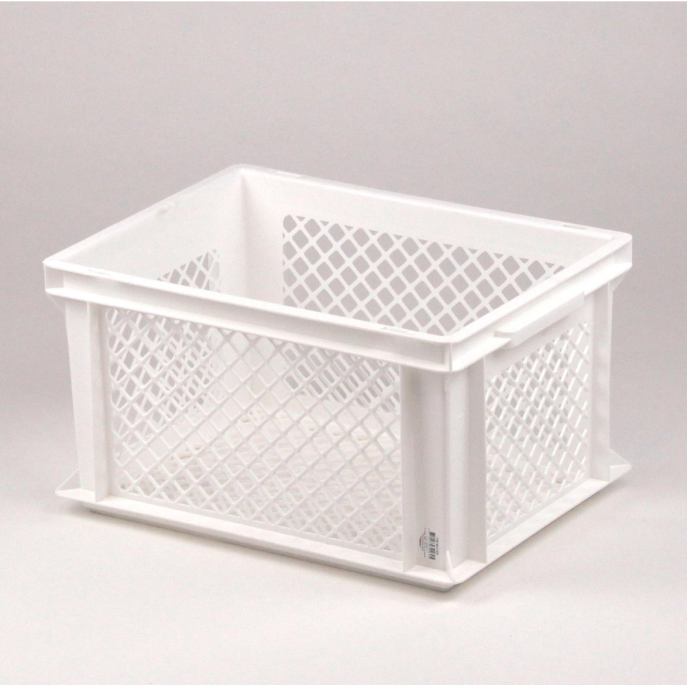 Deze fietskrat is van middel groot formaat en gemaakt vans stevig kunststof voor op de voordrager. De fiets krat heeft een geperforeerde bodem, is geschikt voor op een transportrek. Stevige en degelijke fietskrat van goede kwaliteit. Daarnaast is deze fietskrat is makkelijk aan alle kanten vast te maken met tie wraps. De formaat is groot genoeg voor een overvolle schoolrugtas zonder dat de fiets in breedte toeneemt. De maximale belading is afhankelijk van het maximaal toelaatbaar gewicht van de voordrager