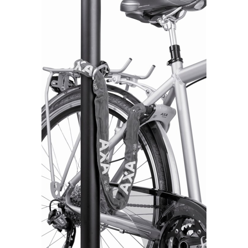 De AXA RLC insteekketting van 100 cm is de perfecte aanvulling op je AXA ringslot. Met deze ketting zet je jouw fiets eenvoudig en extra veilig vast aan een vast object, zoals een paal of hek. Dankzij de 5,5 mm dikke geharde stalen schakels biedt deze ketting een uitstekende bescherming tegen diefstal.