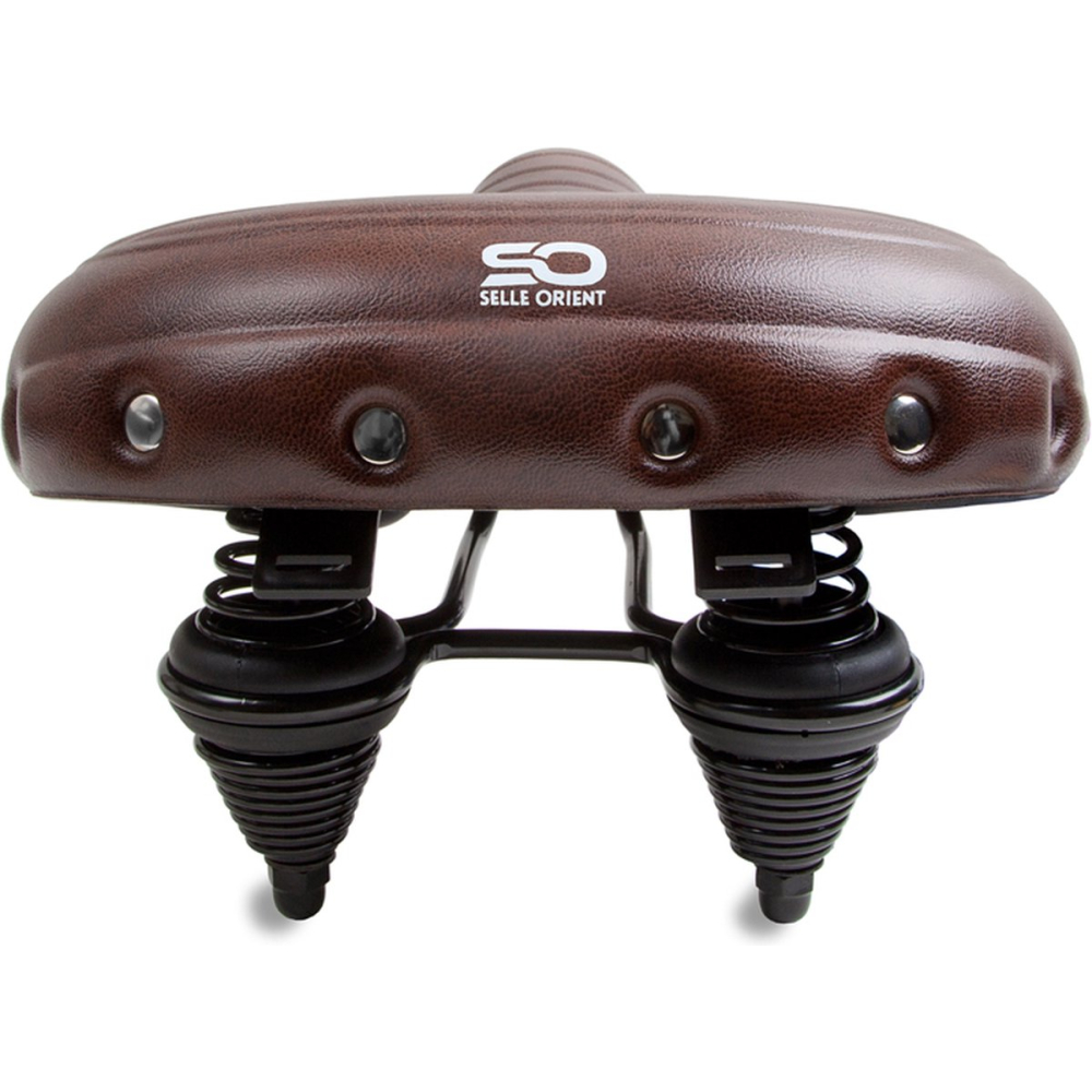 Het bruine Relax zadel van Selle Orient is een vintage-stijl premium comfortabel zadel, geschikt voor een relaxed fietspositie. De Hi-Density PU-schuimen vulling en een dubbel veersysteem zorgen voor een maximale schokabsorptie. Verder is het zadel door zijn vacuüm productie waterdicht en hoogwaardig afgewerkt.