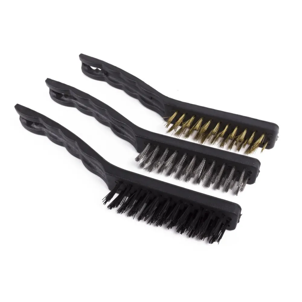 De set bestaat uit drie verschillende borstels: een RVS borstel voor het verwijderen van roest, een messing borstel voor het opruwen en reinigen van metaal, en een nylon borstel voor het verwijderen van vuil zonder het oppervlak te beschadigen. Hierdoor kun je voor elke klus de juiste borstel gebruiken.