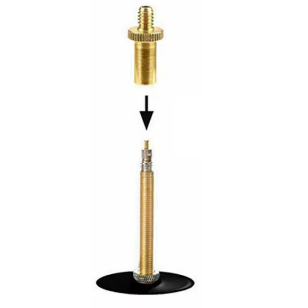Met deze adapter kun je een Frans (Presta) ventiel oppompen met een normale fietspomp.